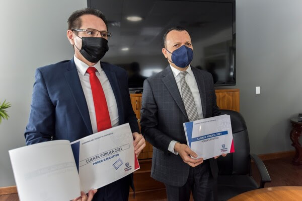El secretario de Hacienda hizo entrega de la Cuenta Pública 2021 al titular de la Auditoría Superior del Estado (ASE),...
