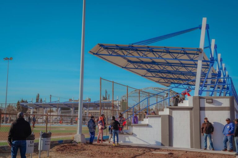 El alcalde de Chihuahua, Marco Bonilla Mendoza, inauguró la rehabilitación de las gradas y techumbre de una cancha de softbol...